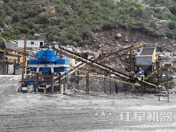 機制砂生產(chǎn)線現(xiàn)場圖,圓錐破更適合破碎硬度大的物料